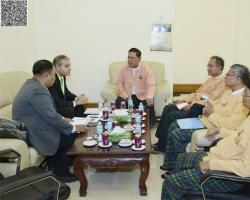 ပြည်သူ့လွှတ်တော်၊ ဥပဒေကြမ်းကော်မတီ ဥက္ကဋ္ဌ ဦးခင်မောင်ဝင်း၊ နိုင်ငံတော် စီးပွားရေးရာ ပေါင်းစပ်ညှိနှိုင်းရေး ကော်မတီမှ အဖွဲ့ဝင် ဦးဘိုဘိုငယ် ဦးဆောင်သော အဖွဲ့နှင့် နော်ဝေနိုင်ငံမှ ကျွမ်းကျင်ပညာရှင် Ms.Mette Agerup တို့အား လက်ခံတွေ့ဆုံ