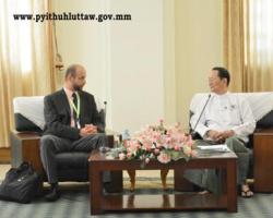 ပြည်သူ့လွှတ်တော် ဥက္ကဋ္ဌကိုယ်စား၊ နိုင်ငံတကာဆက်ဆံရေးကော်မတီ ဥက္ကဋ္ဌ ဦးလှမြင့်ဦး Wilson International Center for Scholars မှ ပြင်သစ်နိုင်ငံသားအဖွဲ့ဝင် တစ်ဦးဖြစ်သည့် Dr. Renaud Egreteau အားလက်ခံတွေ့ဆုံ