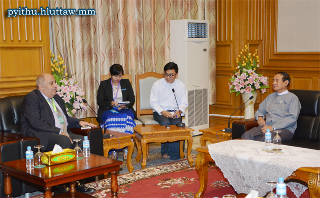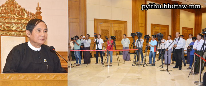 Pyithu Hluttaw Speaker U Win Myint receives local, international journalists