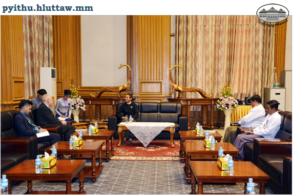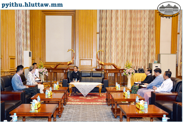 Pyithu Hluttaw Speaker U Win Myint receives Ms. Ellen Goldstein