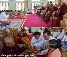 Pyithu Hluttaw Speaker and wife attend novitiation of 577 boys in Zeyathiri Township