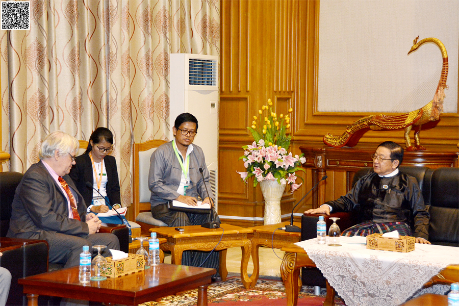 Pyithu Hluttaw Speaker U T Khun Myat receives French ambassador