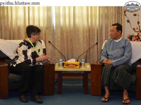 ပြည်ထောင်စုလွှတ်တော်၊ ဥပဒေရေးရာနှင့် အထူးကိစ္စရပ်များ လေ့လာဆန်းစစ် သုံးသပ်ရေးကော်မရှင်ဥက္ကဋ္ဌ သူရဦးရွှေမန်း ကမ္ဘာ့မူးယစ်ဆေးဝါးမူဝါဒဆိုင်ရာ ကော်မရှင် ဥက္ကဋ္ဌ ဆွစ်ဇာလန်သမ္မတဟောင်း H.E. Madam Ruth Dreifuss အားလက်ခံတွေ့ဆုံ ပြည်ထောင်စုလွှတ်တော်၊ ဥပဒေရေးရာနှင့် အထူးကိစ္စရပ်များ လေ့လာဆန်းစစ် သုံးသပ်ရေးကော်မရှင်ဥက္ကဋ္ဌ သူရဦးရွှေမန်းသည် ဆွစ်ဇာလန်နိုင်ငံအခြေစိုက် ကမ္ဘာ့မူးယစ်ဆေးဝါးမူဝါဒဆိုင်ရာ ကော်မရှင် (Global Commission on Drug Policy)၏ ဥက္ကဋ္ဌဖြစ်သူ ဆွစ်ဇာလန်နိုင်ငံသမ္မတဟောင်း H.E. Madam Ruth Dreifuss အား ယနေ့ နံနက် ၁၁ နာရီအချိန်တွင် လွှတ်တော်ဝန်းအတွင်းရှိ ရေးရာဆောင် အမှတ်(I-1)၌ လက်ခံတွေ့ဆုံသည်။