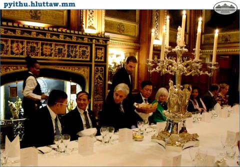 ညစာစားပွဲနှင့် တွေ့ဆုံပွဲများသို့ ပြည်သူ့လွှတ်တော် ဥက္ကဋ္ဌ ဦးဝင်းမြင့် နှင့်အတူ ပြည်သူ့လွှတ်တော် နိုင်ငံသားများ၏ မူလအခွင့်အရေးဆိုင်ရာကော်မတီ ဥက္ကဋ္ဌ ဦးစော၊ ဥပဒေကြမ်းကော်မတီ အဖွဲ့ဝင် ဦးဇော်ဝင်း၊ လွှတ်တော်အခွင့်အရေးကော်မတီ အဖွဲ့ဝင် ဦးစိုင်းစန်သိန်း၊ နိုင်ငံတကာဆက်ဆံရေးကော်မတီ အဖွဲ့ဝင် ဒေါက်တာဒေါ်ရွှေပုံ၊ ဗြိတိန်နိုင်ငံဆိုင်ရာ မြန်မာသံအမတ်ကြီး ဦးကျော်စွာမင်း နှင့် ပြည်သူ့လွှတ်တော်ရုံးမှ တာဝန်ရှိသူများ တက်ရောက်ခဲ့ကြသည်။