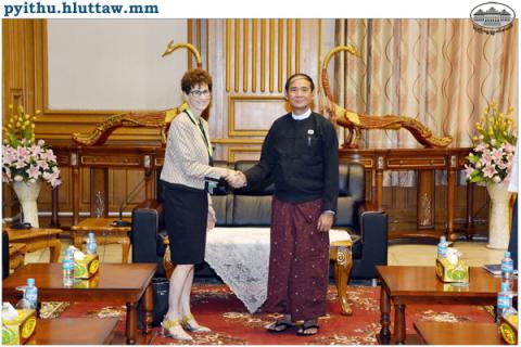 ပြည်သူ့လွှတ်တော်ဥက္ကဋ္ဌ ဦးဝင်းမြင့်သည် ကမ္ဘာ့ဘဏ်၏ မြန်မာ၊ လာအိုနှင့်ကမ္ဘောဒီးယားနိုင်ငံဆိုင်ရာ ညွှန်ကြားရေးမှူး Ms. Ellen Goldstein ဦးဆောင်သော ကိုယ်စားလှယ်အဖွဲ့အား ယနေ့မွန်းလွဲ ၂ နာရီတွင် နေပြည်တော်ရှိ လွှတ်တော်အဆောက်အအုံ၊ ပြည်သူ့လွှတ်တော် ဧည့်ခန်းမဆောင်၌ လက်ခံတွေ့ဆုံသည်။