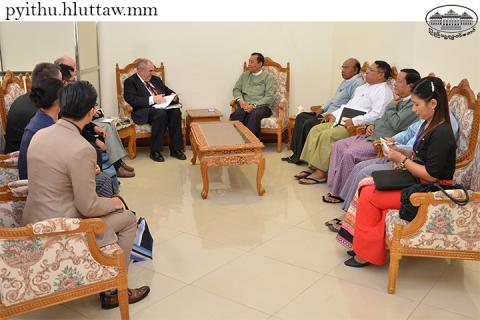 ပြည်ထောင်စုလွှတ်တော်၊ ဥပဒေရေးရာနှင့်အထူးကိစ္စရပ်များ လေ့လာဆန်းစစ် သုံးသပ်ရေး ကော်မရှင်ဥက္ကဋ္ဌ သူရဦးရွှေမန်းသည် ဗြိတိန်လွှတ်တော်မှ အကူအညီပေးရေးအဖွဲ့ဖြစ်သည့် WFD (Westminster Foundation for Democracy) ကိုယ်စားလှယ်အဖွဲ့အား ယနေ့နံနက် ၁၁ နာရီ အချိန်တွင် နေပြည်တော်ရှိ လွှတ်တော်ရေးရာဆောင်အမှတ် (I-11) ၌ လက်ခံ တွေ့ဆုံသည်။