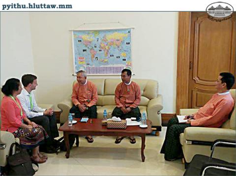 ပြည်သူ့လွှတ်တော်၊ နိုင်ငံတကာဆက်ဆံရေးကော်မတီ ဥက္ကဋ္ဌ ဦးဇော်သိန်း နှင့် နိုင်ငံသားများ၏ မူလအခွင့်အရေးဆိုင်ရာ ကော်မတီဥက္ကဋ္ဌ ဦးစောတို့သည် Asean Parlimentarians for Human Rights (APHR) မှ Mr.Oren Samet, Director of Research and Advocacy ဦးဆောင်သော ကိုယ်စားလှယ်အဖွဲ့အား ယနေ့ မွန်းလွဲ ၃ နာရီတွင် နေပြည်တော်ရှိ လွှတ်တော်အဆောက်အအုံ ရေးရာဆောင်အမှတ် (I-5) အစည်းအဝေးခန်းမ၌ လက်ခံတွေ့ဆုံသည်။