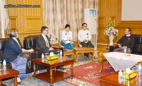 ပြည်သူ့လွှတ်တော်ဥက္ကဋ္ဌ ဦးဝင်းမြင့် သည် National Democratic Institute (NDI) အကြံပေးပုဂ္ဂိုလ် Mr. Edmond Effendija နှင့် အဖွဲ့အား ယနေ့ညနေ ၃ နာရီတွင် နေပြည်တော်ရှိ လွှတ်တော် အဆောက် အအုံ၊ ပြည်သူ့လွှတ်တော်ဧည့်ခန်းမ၌ လက်ခံတွေ့ဆုံသည်။