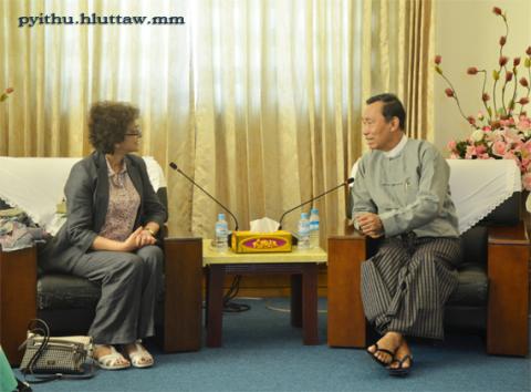 ပြည်ထောင်စုလွှတ်တော် ဥပဒေရေးရာနှင့်အထူးကိစ္စရပ်များ လေ့လာဆန်းစစ် သုံးသပ်ရေးကော်မရှင် ဥက္ကဋ္ဌ သူရဦးရွှေမန်း သည် ယနေ့ မွန်းလွဲ ၁၂ နာရီခွဲတွင် IDLO ညွှန်ကြားရေးမှူးချုပ် Ms.Irene Ahan အား လည်းကောင်း၊ မွန်းလွဲ ၂ နာရီတွင် UNDP ဌာနေကိုယ်စားလှယ် Ms.Renata Dessallien အား လည်းကောင်း နေပြည်တော်ရှိ လွှတ်တော် အဆောက်အအုံရေးရာဆောင်၌ သီးခြားစီ လက်ခံတွေ့ဆုံသည်။