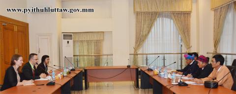 ပြည်သူ့လွှတ်တော်၊ တိုင်းရင်းသားရေးရာနှင့် ပြည်တွင်းငြိမ်းရေးဖော်ဆောင်မှု ကော်မတီ ဥက္ကဋ္ဌ ဦးခွန်မောင်သောင်းသည် WESTMINISTER FOUNDATION FOR DEMOCRACY (WFD) မှ နည်းပညာ အကြံပေး Mr.Franklin De Vrieze ဦးဆောင်သောအဖွဲ့အား ယနေ့ မွန်းလွဲ (၁၅း၀၀) နာရီတွင် နေပြည်တော်ရှိ လွှတ်တော်အဆောက်အဦ ရေးရာဆောင်အမှတ် (I-6) အစည်းအဝေးခန်းမတွင် လက်ခံ တွေ့ဆုံသည်။