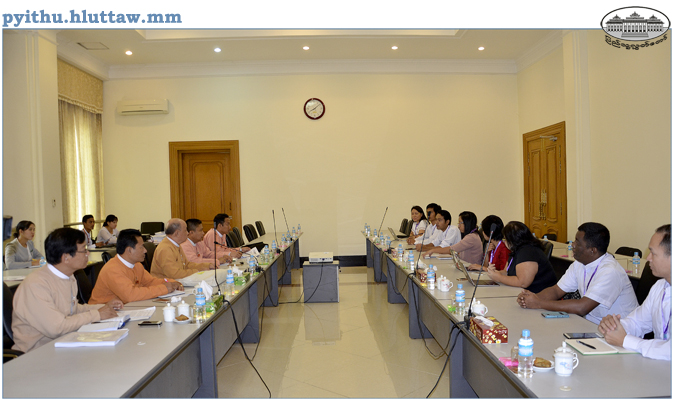 ပြည်သူ့လွှတ်တော်၊ ဥပဒေကြမ်းကော်မတီဥက္ကဋ္ဌ ဦးထွန်းအောင်(ခ)ဦးထွန်းထွန်းဟိန်သည် ဆက်သွယ်ရေး ဥပဒေပြင်ဆင်ရေးနှင့်ပုဒ်မ ၆၆ (ဃ) ဖျက်သိမ်းရေးလှုပ်ရှားမှု ပူးပေါင်း အဖွဲ့အား ယနေ့ နံနက် ၈ နာရီ အချိန်တွင် နေပြည်တော်ရှိ လွှတ်တော်ရေးရာဆောင် အဆောင်အမှတ် (I-2) အစည်းအဝေးခန်းမ၌ လက်ခံတွေ့ဆုံသည်။