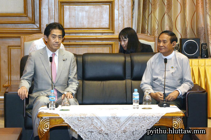 ပြည်သူ့လွှတ်တော်ဥက္ကဋ္ဌ ဦးဝင်းမြင့်သည် မြန်မာ-ဂျပန် ပါလီမန်ချင်း ချစ်ကြည်ရေး ကော်မတီ ဥက္ကဋ္ဌနှင့် Parliamentary Sakura Promotion Association of Japan ဥက္ကဋ္ဌ H.E.Mr. Ichiro AISAWA အား ယနေ့ နံနက် ၁၀ နာရီတွင် နေပြည်တော်ရှိ လွှတ်တော် အဆောက်အအုံ ပြည်သူ့လွှတ်တော် ဧည့်ခန်းမဆောင်၌ လက်ခံတွေ့ဆုံသည်။