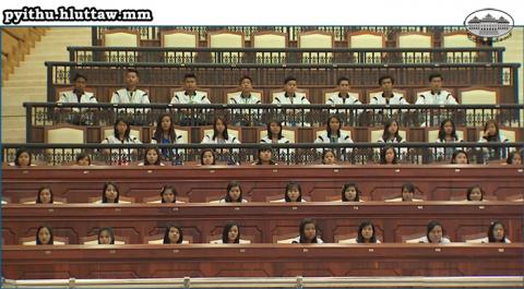 ဒုတိယအကြိမ် ပြည်သူ့လွှတ်တော် စတုတ္ထပုံမှန်အစည်းအဝေး ဒုတိယနေ့တွင် ပြည်သူ့လွှတ်တော် ကိုယ်စားလှယ် ဦးခင်မောင်ဦး ကျောက်တံခါးမဲဆန္ဒနယ်၏ မိတ်ဆွေ (၂၃) ဦး၊ ပါမောက္ခ ဒေါက်တာခင်မြတ်မြတ်အောင် ဦးဆောင်သည့် မိတ္ထီလာတက္ကသိုလ်မှ ကြီးကြပ်သူ ဆရာ/ဆရာမ၊ ကျောင်းသား/ကျောင်းသူ (၂၄၉) ဦး၊ ဟိုတယ်နှင့်ခရီးသွားလာရေး ဝန်ကြီးဌာနမှ ဦးဝင်းမြင့် (ဦးစီးအရာရှိ) နှင့် စကားပြန်တစ်ဦး ဦးဆောင်၍ ဆွစ်ဇာလန်နိုင်ငံသား (၂) ဦး၊ စုစုပေါင်း (၂၇၆) ဦး တို့သည် ယနေ့နံနက်တွင် ကျင်းပသည့် ပြည်သူ့လွှတ်တော် အစည်းအဝေးသို့ တက်ရောက်ပြီး လွှတ်တော်အဆောက်အအုံများကို လေ့လာကြည့်ရှုခဲ့ကြပါသည်။