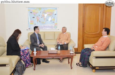 ပြည်သူ့လွှတ်တော်၊ နိုင်ငံတကာဆက်ဆံရေးကော်မတီ ဥက္ကဋ္ဌ ဦးဇော်သိန်းသည် ပြည်ထောင်စုသမ္မတ မြန်မာနိုင်ငံဆိုင်ရာ စင်္ကာပူသံရုံးမှ Deputy Chief of Mission & Counsellor, Mr. Koh Chee Chain အား ယနေ့ ညနေ ၃ နာရီခွဲတွင် နေပြည်တော်ရှိ လွှတ်တော် ရေးရာဆောင် အဆောင်အမှတ် (I-5) အစည်းအဝေးခန်းမ၌ လက်ခံတွေ့ဆုံသည်။