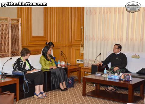 ပြည်သူ့လွှတ်တော် ဒုတိယဥက္ကဋ္ဌ ဦးတီခွန်မြတ် သည် ဗြိတိန်နိုင်ငံ၊ လေဘာပါတီမှ အောက်လွှတ်တော် အမတ်များဖြစ်ကြသည့် Ms.Margaret Hodge နှင့် Ms. Rushanara All ဦးဆောင်သည့် ကိုယ်စားလှယ်အဖွဲ့အား ယနေ့ မွန်းလွဲ ၁ နာရီတွင် နေပြည်တော်ရှိ လွှတ်တော် အဆောက်အအုံ ပြည်သူ့လွှတ်တော် ဒုတိယဥက္ကဋ္ဌရုံး ဧည့်ခန်းမ၌ လက်ခံတွေ့ဆုံသည်။