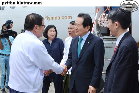 ပြည်သူ့လွှတ်တော်ဥက္ကဋ္ဌ ဦးဝင်းမြင့်၏ ဖိတ်ကြားချက်အရ ပြည်ထောင်စုသမ္မတ မြန်မာနိုင်ငံတော်သို့ ချစ်ကြည်ရေးခရီးလာရောက်လည်ပတ်သောကိုရီးယားသမ္မတနိုင်ငံအမျိုးသားလွှတ်တော်ဥက္ကဋ္ဌ H.E.Mr. Chung Sye-kyunဦးဆောင်သောကိုယ်စားလှယ်အဖွဲ့သည် ၁၀-၈-၂၀၁၇ ရက်နေ့ ၁၂ နာရီ ၂၀ မိနစ်တွင် နေပြည်တော်သို့ UB111 ဖြင့် ရောက်ရှိခဲ့ကြသည်။ အဆိုပါ ချစ်ကြည်ရေးခရီးလာရောက်ကြသည့် ကိုရီးယားသမ္မတနိုင်ငံအမျိုးသားလွှတ်တော်ဥက္ကဋ္ဌ H.E.Mr. Chung Sye-kyunဦးဆောင်သောကိုယ်စားလှယ်အဖွဲ့အားနေပြည်တော် အပြည်ပြည်ဆိုင်ရာလေဆိပ်၌ ပြည်သူ့လွှတ်တော်ဒုတိယဥက္ကဋ္ဌ ဦးတီခွန်မြတ်နှင့်အတူ နိုင်ငံတကာဆက်ဆံရေးကော်မတီဥက္ကဋ္ဌ ဦးဇော်သိန်းနှင့် ပြည်သူ့လွှတ်တော်ရုံးမှ တာဝန်ရှိသူများ က ခရီးဦးကြိုဆို နှုတ်ဆက်ကြသည်။
