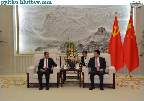 ပြည်သူ့လွှတ်တော်ဥက္ကဋ္ဌ ဦးဝင်းမြင့်သည် စက်တင်ဘာလ ၇ ရက်နေ့ ၁၀ နာရီခွဲတွင် တရုတ်ကွန်မြူနစ် ပါတီဗဟိုကော်မတီရုံး၌ တရုတ်ကွန်မြူနစ်ပါတီ ဗဟိုကော်မတီ၊ နိုင်ငံတကာဆက်ဆံရေးဝန်ကြီး H.E. Mr. Song Tao နှင့် တွေ့ဆုံဆွေးနွေးသည်။