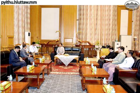 ပြည်သူ့လွှတ်တော်ဥက္ကဋ္ဌ ဦးဝင်းမြင့်သည် ပြည်ထောင်စုသမ္မတ မြန်မာနိုင်ငံဆိုင်ရာ နီပေါနိုင်ငံ သံအမတ်ကြီး H.E. Mr. Bhim K. Udas အား ယနေ့ မွန်းလွဲ ၂ နာရီတွင် နေပြည်တော်ရှိ လွှတ်တော် အဆောက်အအုံ၊ ပြည်သူ့လွှတ်တော်ဆောင် ဧည့်ခန်းမ၌ လက်ခံတွေ့ဆုံသည်။
