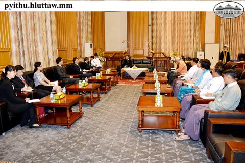 ပြည်သူ့လွှတ်တော်ဥက္ကဋ္ဌ ဦးဝင်းမြင့် သည် တရုတ်ပြည်သူ့သမ္မတနိုင်ငံ၊ နိုင်ငံရေး အတိုင်ပင်ခံ ကွန်ဖရင့်၊ နိုင်ငံတကာရေးရာကော်မတီ ဒုတိယဥက္ကဋ္ဌ Mr. Yuan Guiren ဦးဆောင်သော ကိုယ်စားလှယ်အဖွဲ့အား ယနေ့ မွန်းလွဲ ၂ နာရီတွင် နေပြည်တော်ရှိ လွှတ်တော်အဆောက်အအုံ၊ ပြည်သူ့လွှတ်တော်ဧည့်ခန်းမဆောင်၌ လက်ခံတွေ့ဆုံသည်။