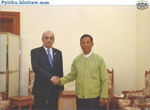 ပြည်ထောင်စုလွှတ်တော်၊ ဥပဒေရေးရာနှင့်အထူးကိစ္စရပ်များ လေ့လာဆန်းစစ် သုံးသပ်ရေး ကော်မရှင်ဥက္ကဋ္ဌ သူရဦးရွှေမန်းသည် ပြည်ထောင်စု သမ္မတမြန်မာနိုင်ငံဆိုင်ရာ ကာတာသံအမတ်ကြီး H.E Mr Hassan bin Mohamed Rafei Al Emadi အား ယနေ့နေ့လယ် ၁ နာရီ ၄၅ မိနစ် အချိန်တွင် နေပြည်တော်ရှိ လွှတ်တော် ရေးရာဆောင်အမှတ် (I-11) ၌ လက်ခံတွေ့ဆုံသည်။ ထိုသို့တွေ့ဆုံစဉ် အထူးကော်မရှင် ဥက္ကဋ္ဌမှ ရခိုင်ဒေသ အခြေအနေများအား အမှန်အတိုင်း သိမြင်နိုင်ရန် လိုအပ်ပါကြောင်း၊ ကာတာနိုင်ငံရှိ မီဒီယာများအနေဖြင့်လည်း ရခိုင်ဖြစ်စဉ်အပေါ် ဘက်မျှသည့် သတင်းများ ထုတ်လွှင့်ပေးခြင်းဖြင့် ကမ္ဘာမှအခြေအနေမှန်များ သိရှိနိုင်စေရေးအတွက် ကူညီဆောင်ရွက် ပေးစေလိုပါကြောင်းနှင့် လူသားချင်းစာနာ ထောက်ထားမှု အကူအညီများကိုလည်း သတ်မှတ်ထားသည့် လမ်းကြောင်းများအတိုင်း ကူညီပေးစေလိုပါကြောင်း ဆွေးနွေးသည်။ အဆိုပါတွေ့ဆုံပွဲသို့ ပြည်ထောင်စုလွှတ်တော်၊ ဥပဒေရေးရာနှင့် အထူးကိစ္စရပ်များ လေ့လာ ဆန်းစစ်သုံးသပ်ရေး ကော်မရှင်ဥက္ကဋ္ဌနှင့်အတူ ကော်မရှင်ရုံးမှတာဝန်ရှိသူများ တက်ရောက်ကြသည်။