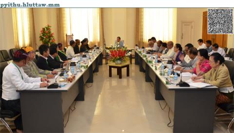 ပြည်ထောင်စုလွှတ်တော်၊ ဥပဒေရေးရာနှင့်အထူးကိစ္စရပ်များ လေ့လာဆန်းစစ်သုံးသပ်ရေး ကော်မရှင်ဥက္ကဋ္ဌ သူရဦးရွှေမန်းသည် ကချင်ပြည်နယ်ခရစ်ယာန်ဂိုဏ်းဂဏပေါင်းစုံမှ ကိုယ်စားလှယ်များ ပါဝင်သောအဖွဲ့အား ယနေ့နံနက် ၁၀း၀၀ နာရီအချိန်တွင် နေပြည်တော်ရှိ လွှတ်တော်ရေးရာ ဆောင် အမှတ် (I-1) ၌ လက်ခံတွေ့ဆုံသည်။