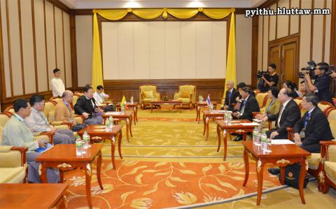 ပြည်သူ့လွှတ်တော်ဒုတိယဥက္ကဋ္ဌ၊ (၃၇) ကြိမ်မြောက်အာဆီယံ ပါလီမန်များ အထွေထွေညီလာခံ ကျင်းပရေးဦးစီးကော်မတီဥက္ကဋ္ဌ ဦးတီခွန်မြတ်သည် AIPA ညီလာခံသို့ တက်ရောက်လာသော ထိုင်းနိုင်ငံကိုယ်စားလှယ်အဖွဲ့ ဒုတိယခေါင်းဆောင်၊ သိပ္ပံ၊ နည်းပညာ၊ သတင်းအချက်အလက်နှင့် လူထုဆက်သွယ်ရေးကော် မတီဥက္ကဋ္ဌ Mr. Charlie CHANDRUAND နှင့်အဖွဲ့အား Hotel Royal ACE အင်းဝဆောင် အစည်းအဝေးခန်းမ၌ ယနေ့ နံနက် ၁၁ နာရီ ၄၅ မိနစ်တွင် လက်ခံတွေ့ဆုံသည်။