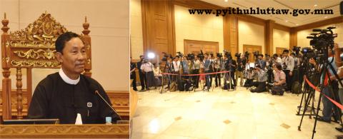 ပြည်ထောင်စုလွှတ်တော် နာယက ပြည်သူ့လွှတ်တော် ဥက္ကဋ္ဌ သူရဦးရွှေမန်း သည် ပြည်တွင်း သတင်းဌာနများ၊ ပြည်တွင်းအခြေစိုက် ပြည်ပသတင်းဌာနများနှင့် ပြည်တွင်းသတင်းစာ၊ ဂျာနယ် များမှ အယ်ဒီတာနှင့် သတင်းထောက်များ အား ၂၀၁၆ ခုနှစ် ဇန်နဝါရီလ ၂၉ ရက်နေ့ ညနေ (၃း၀၀) နာရီတွင် နေပြည်တော်ရှိ လွှတ်တော်အဆောက်အအုံ ဇမ္ဗူသီရိဆောင် မီဒီယာခန်း၌ တွေ့ဆုံသည်။