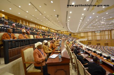 ပြည်သူ့လွှတ်တော် ဥက္ကဋ္ဌတာဝန် ထမ်းဆောင်ခဲ့သူ သူရဦးရွှေမန်းနှင့် ပြည်သူ့လွှတ်တော် ကိုယ်စား လှယ် တာဝန်ထမ်းဆောင်ခဲ့သူများ ၂၉ ဦး၊ အမျိုးသားဒီမိုကရေစီအဖွဲ့ချုပ် နာယက သူရဦးတင်ဦး ခေါင်းဆောင်သည့် အဖွဲ့ဝင်များ ၂၁ ဦး၊ အမျိုးသားလွှတ်တော် ကိုယ်စားလှယ် ၁၃၅ ဦး၊ တိုင်းဒေသကြီးနှင့် ပြည်နယ်လွှတ်တော် ကိုယ်စားလှယ် ၄၈ ဦး၊ အခြားပါတီဝင်/အဖွဲ့အစည်းနှင့်ပြည် သူ လူထု ၉၀ ဦး၊ သင်တန်းသူ၊ သင်တန်းသား ၃၀ ဦးနှင့် နိုင်ငံခြား သံရုံးများမှ သံအမတ်များနှင့် နိုင် ငံခြား ဧည့်သည်တော်များ ၁၃ ဦး၊ စုစုပေါင်း ၃၆၇ ဦးတို့သည် ဒုတိယအကြိမ် ပြည်သူ့လွှတ်တော် ပထမပုံမှန်အစည်းအဝေး ပထမမြောက်နေ့ ကျင်းပနေမှုနှင့် လွှတ်တော် အဆောက်အအုံများကို လေ့လာကြည့်ရှုခဲ့ကြသည်။