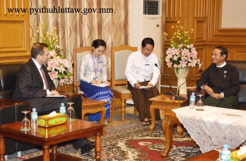 ပြည်သူ့လွှတ်တော်ဥက္ကဋ္ဌ ဦးဝင်းမြင့်သည် မြန်မာနိုင်ငံဆိုင်ရာ အမေရိကန်နိုင်ငံ သံအမတ်ကြီး H.E.Mr. Derek Mitchell အား ယနေ့ ညနေ ၃ နာရီ ၄၅ မိနစ်တွင် နေပြည်တော်ရှိ လွှတ်တော်အဆောက်အအုံ ပြည်သူ့လွှတ်တော် ဧည့်ခန်းမ၌ လက်ခံတွေ့ဆုံသည်။