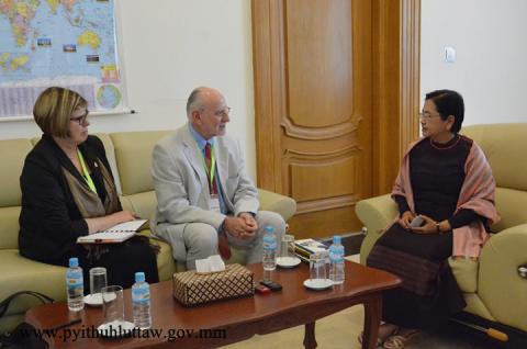 ပြည်သူ့လွှတ်တော် နိုင်ငံတကာဆက်ဆံရေးကော်မတီ ဥက္ကဋ္ဌဒေါ်စုစုလွင်သည် အမေရိကန် ပြည်ထောင်စု National Democratic Institute (NDI) မှ မြန်မာနိုင်ငံဆိုင်ရာ ဌာနေ ကိုယ်စားလှယ် Mr. Richard A.Nuccio နှင့် ကနေဒါနိုင်ငံ ပြည်နယ်လွှတ်တော် ကိုယ်စားလှယ်ဟောင်း Ms. Elizabeth Weir တို့အဖွဲ့အား ယနေ့ မွန်းလွဲ ၁ နာရီအချိန်တွင် နေပြည်တော်ရှိ ပြည်သူ့လွှတ်တော် ကော်မတီရေးရာဆောင် အဆောင်အမှတ် (I-5) ဧည့်ခန်းမ၌ လက်ခံတွေ့ဆုံသည်။