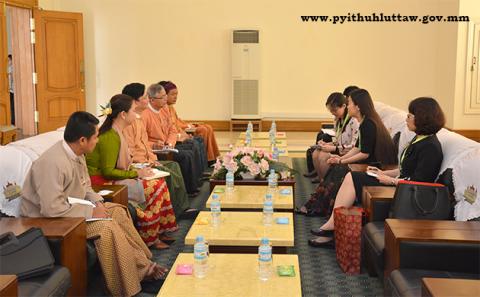 ပြည်သူ့လွှတ်တော်၊ နိုင်ငံတကာဆက်ဆံရေးကော်မတီ၏ အတွင်းရေးမှူး ဦးဘိုဘိုဦး သည် တရုတ်ပြည်သူ့သမ္မတနိုင်ငံ၊ ကွန်မြူနစ်ပါတီ အပြည်ပြည်ဆိုင်ရာဌာန ဒုတိယညွှန်ကြားရေးမှူးချုပ် မစ္စရောင်ဟွေဟွာ ဦးဆောင်သော ကိုယ်စားလှယ်အဖွဲ့ အား ၂၀၁၆ ခုနှစ် မတ်လ ၁၈ ရက်နေ့ နံနက် (၉:၀၀) နာရီအချိန်တွင် နေပြည်တော်ရှိ၊ လွှတ်တော်အဆောက်အအုံ၊ ရေးရာဆောင်အမှတ် (I-1) ဧည့်ခန်းမ၌ လက်ခံတွေ့ဆုံသည်။