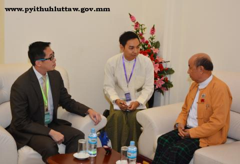 ပြည်သူ့လွှတ်တော် ဥပဒေကြမ်းကော်မတီဥက္ကဋ္ဌ ဦးထွန်းအောင် (ခ) ဦးထွန်းထွန်းဟိန် သည် မြန်မာနိုင်ငံဆိုင်ရာ စင်္ကာပူသံရုံးမှ ဒုတိယသံရုံးအကြီးအကဲ/သံမှူးကြီးဖြစ်သူ Mr. KOH CHEE CHIAN အား ယနေ့ နံနက် ၉ နာရီခွဲ အချိန်တွင် နေပြည်တော်ရှိ လွှတ်တော်အဆောက် အအုံ ရေးရာဆောင်အမှတ်(I-2) ဥက္ကဋ္ဌရုံးခန်း၌ လက်ခံတွေ့ဆုံသည်။