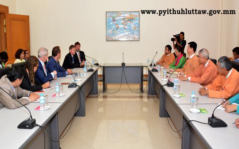 ပြည်သူ့လွှတ်တော် ဥက္ကဋ္ဌ ဦးဝင်းမြင့် သည် မြန်မာနိုင်ငံဆိုင်ရာ အမေရိကန်နိုင်ငံ သံအမတ်ကြီး H.E.Mr. Scot Marciel အား ယနေ့ မွန်းလွဲ ၁၂ နာရီ ၁၅ မိနစ်တွင် နေပြည်တော်ရှိ လွှတ်တော်အဆောက်အအုံ ပြည်သူ့လွှတ်တော် ဧည့်ခန်းမ၌ လက်ခံတွေ့ဆုံသည်။