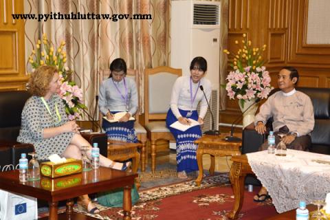 ပြည်သူ့လွှတ်တော် ဥက္ကဋ္ဌ ဦးဝင်းမြင့် သည် ဒီမိုကရေစီ အထောက်အကူပြုရေးနှင့် လွှတ်တော်အချင်းချင်း ပူးပေါင်းဆောင်ရွက်ရေးဆိုင်ရာ ဥရောပပါလီမန်အမတ် Ms.Judith Sargentini အား ယနေ့ မွန်းလွဲ ၂ နာရီတွင် နေပြည်တော်ရှိ လွှတ်တော် အဆောက်အအုံ ပြည်သူ့လွှတ်တော် ဧည့်ခန်းမ၌ လက်ခံတွေ့ဆုံသည်။