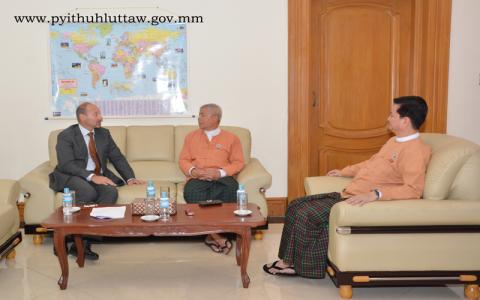 ပြည်သူ့လွှတ်တော်၊ နိုင်ငံတကာဆက်ဆံရေးကော်မတီ ဥက္ကဋ္ဌဦးဇော်သိန်း သည်ပြည်ထောင်စု မြန်မာနိုင်ငံဆိုင်ရာ ဥရောပသမဂ္ဂ သံအမတ်ကြီး H.E.Mr.Roland Kobia အား ယနေ့ ညနေ ၄ နာရီအချိန်တွင် လွှတ်တော်ရေးရာဆောင် အဆောင်အမှတ် (I-5) ၌ လက်ခံတွေ့ဆုံသည်။