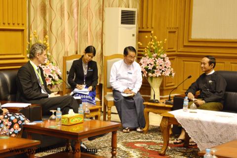 ပြည်သူ့လွှတ်တော်ဥက္ကဋ္ဌ ဦးဝင်းမြင့်သည် နော်ဝေနိုင်ငံ၊ ဒုတိယနိုင်ငံခြားရေးဝန်ကြီး H.E.Mr. Tore Hattrem ဦးဆောင်သော ကိုယ်စားလှယ်အဖွဲ့အား ယနေ့ မွန်းလွဲ ၂ နာရီခွဲတွင် နေပြည်တော်ရှိ လွှတ်တော်အဆောက်အအုံ ပြည်သူ့လွှတ်တော် ဧည့်ခန်းမ၌ လက်ခံတွေ့ဆုံသည်။