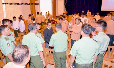 ထို့နောက် လွှတ်တော်ကိုယ်စားလှယ်များ အနေဖြင့် မဲဆန္ဒနယ်ရှင်များကို လွှတ်တော် အတွေ့အကြုံ ရှင်းလင်းခြင်း၊ မဲဆန္ဒနယ်ရှင်များ၏ သဘောထားများကို လွှတ်တော်သို့တင်ပြခြင်း စသည့် တာဝန်ကို ကျေပွန်အောင် ဆောင်ရွက်ကြရမည်ဖြစ်ကြောင်း၊ လုပ်ပိုင်ခွင့်ကို အလွဲသုံးစားပြု၍ ကိုယ်ကျိုးရှာမှု၊ လာဘ်ပေးလာဘ်ယူမှု၊ ခြိမ်းခြောက်မှုများကို အထူးရှောင်ကြဉ်ရန်လိုကြောင်း၊ ပြည်သူလူထုနှင့် ပြောဆိုဆက်ဆံရာတွင် ပြည်သူသာအမိ၊ ပြည်သူသာအဖ ဆိုသည်ကို မမေ့လျော့ကြရန်လိုကြောင်း၊ ရပိုင်ခွင့်နှင့် အခွင့်အရေးများကို သုံးစွဲရာတွင် မရှိမဖြစ်လိုအပ်ချက်ထက် ပိုမိုမသုံးစွဲကြရန်လိုကြောင်း၊ တာဝန်ယူချိန်ကာလမှာ တိုင်းပြည်အတွက် အကောင်းဆုံး လုပ်ပေးခြင်းသည် သမိုင်းမှာမွန်မြတ်သည့် တာဝန်ယူမှုအဖြစ် ထင်ကျန်ရစ် မည်ဖြစ်ကြောင်း။