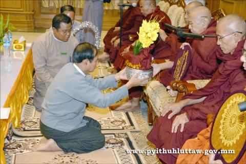 ထို့နောက် ဆရာတော်၊ သံဃာတော် အရှင်မြတ်များထံ ပြည်သူ့လွှတ်တော် ဥက္ကဋ္ဌ၊ အမျိုးသားလွှတ်တော် ဒုတိယဥက္ကဋ္ဌ နှင့် လွှတ်တော်ရုံးအသီးသီးမှ တာဝန်ရှိသူများက လှူဖွယ်ဝတ္ထုများ ဆက်ကပ်လှူဒါန်းခဲ့သည်။