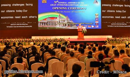 မြန်မာနိုင်ငံက အိမ်ရှင်အဖြစ် လက်ခံကျင်းပသည့် (၃၇) ကြိမ်မြောက် အာဆီယံပါလီမန်များညီလာခံ၏ ဆောင်ပုဒ်မှာ “အာဆီယံ အသိုက်အဝန်း တိုးတက်ထွန်းကားရေး အာဆီယံပါလီမန်များ ညီလာခံက တက်ကြွလှုပ်ရှားပေး” ဖြစ်သည်။