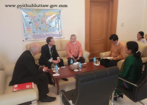 ပြည်သူ့လွှတ်တော် နိုင်ငံတကာဆက်ဆံရေး ကော်မတီ ဥက္ကဋ္ဌ ဦးဇော်သိန်း သည် နယူးဇီလန်နိုင်ငံ သံအမတ်ကြီး H.E.Steve Marshall ဦးဆောင်သော ကိုယ်စားလှယ်အဖွဲ့အား ယနေ့ ညနေ (၃) နာရီတွင် နေပြည်တော်ရှိ လွှတ်တော် အဆောက်အအုံ ရေးရာဆောင် အဆောင်အမှတ် (I-5) ဧည့်ခန်းမ၌ လက်ခံတွေ့ဆုံသည်။