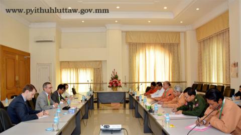 ပြည်သူ့လွှတ်တော် ဥပဒေကြမ်းကော်မတီ ဥက္ကဋ္ဌ ဦးထွန်းအောင် (ခ) ဦးထွန်းထွန်းဟိန် သည် အမေရိကန် သံအမတ်ကြီး H.E.Mr.Scot Marciel အား ယနေ့ ညနေ (၁၆း၀၀) နာရီတွင် နေပြည်တော်ရှိ လွှတ်တော်အဆောက်အအုံ ရေးရာဆောင် အမှတ် (I-2) ၌ လက်ခံတွေ့ဆုံသည်။
