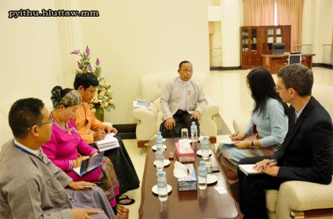 ပြည်သူ့လွှတ်တော်၊ လွှတ်တော်အခွင့်အရေးကော်မတီ အတွင်းရေးမှူး ဒေါက်တာလှမိုး The Asia Foundation မှ Dr. Renaud Egreteau အား ယနေ့ မွန်းလွဲ ၁ နာရီတွင် နေပြည်တော်ရှိ လွှတ်တော်အဆောက်အအုံ ရေးရာဆောင် အဆောင်အမှတ် (I-4) အစည်းအဝေးခန်းမ၌ လက်ခံတွေ့ဆုံသည်။