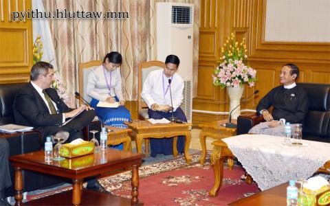 ပြည်သူ့လွှတ်တော်ဥက္ကဋ္ဌ ဦးဝင်းမြင့်သည် ဥရောပသမဂ္ဂ၏ လူ့အခွင့်အရေးဆိုင်ရာ အထူးကိုယ်စားလှယ် Mr. Stavros Lambrinidis ဦးဆောင်သော ကိုယ်စားလှယ်အဖွဲ့အား ယနေ့ ညနေ ၄ နာရီတွင် နေပြည်တော်ရှိ လွှတ်တော် အဆောက်အအုံ ပြည်သူ့လွှတ်တော် ဧည့်ခန်းမဆောင်၌ လက်ခံတွေ့ဆုံသည်။