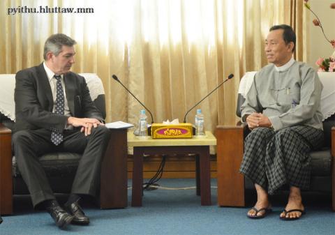ပြည်ထောင်စုလွှတ်တော်၊ ဥပဒေရေးရာနှင့် အထူးကိစ္စရပ်များ လေ့လာဆန်းစစ် သုံးသပ်ရေး ကော်မရှင်ဥက္ကဋ္ဌ သူရဦးရွှေမန်းသည် ဥရောပသမဂ္ဂ လူ့အခွင့်အရေး အထူးကိုယ်စားလှယ် H.E. Mr. Stavros Lambrinidis နှင့်အဖွဲ့အား ယနေ့ နေ့လယ် ၁ နာရီခွဲအချိန်တွင် လွှတ်တော်ဝန်း အတွင်းရှိ ရေးရာဆောင်အမှတ် (I-1)၌ လက်ခံတွေ့ဆုံသည်။