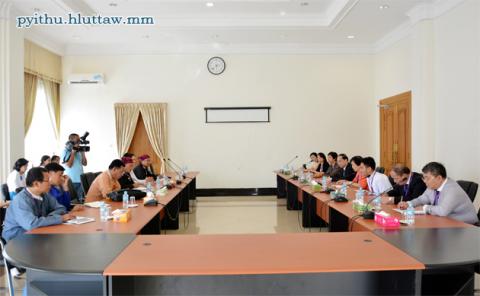 ပြည်သူ့လွှတ်တော်၊ တိုင်းရင်းသားရေးရာနှင့် ပြည်တွင်းငြိမ်းချမ်းရေးဖော်ဆောင်မှု ကော်မတီ အတွင်းရေးမှူး ဦးအင်ထုံးခါးနော်ဆမ်သည် တရုတ်နိုင်ငံ၊ ကွမ်ရှီကျွမ်းကိုယ်ပိုင်အုပ်ချုပ်ခွင့်ရဒေသ တိုင်းရင်းသား ရေးရာကော်မတီ ဥက္ကဋ္ဌ Ms.He Longqun ဦးဆောင်သော ကိုယ်စားလှယ် အဖွဲ့အား ယနေ့ မွန်းလွဲ ၂ နာရီခွဲတွင် နေပြည်တော်ရှိ လွှတ်တော်အဆောက်အအုံ ရေးရာဆောင် အဆောင်အမှတ် (I-6) အစည်းအဝေးခန်းမ၌ လက်ခံတွေ့ဆုံသည်။