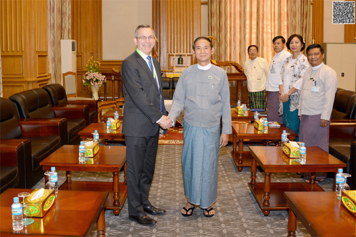 ပြည်သူ့လွှတ်တော်ဥက္ကဋ္ဌ ဦးဝင်းမြင့်သည် ပြည်ထောင်စုသမ္မတမြန်မာနိုင်ငံတော်ဆိုင်ရာ အမေရိကန် ပြည်ထောင်စုသံအမတ်ကြီး H.E. Mr. Scot Marciel အား ယနေ့ မွန်းလွဲ ၂ နာရီခွဲတွင် နေပြည်တော်ရှိ လွှတ်တော်အဆောက်အအုံ၊ ပြည်သူ့လွှတ်တော် ဧည့်ခန်းမဆောင်၌ လက်ခံတွေ့ဆုံသည်။