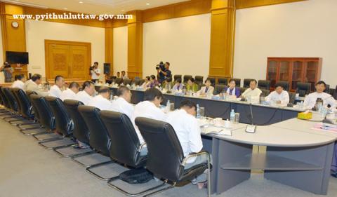 ပြည်သူ့လွှတ်တော်ဥက္ကဋ္ဌ၊ ဒုတိယဥက္ကဋ္ဌနှင့် ဥပဒေရေးရာနှင့် အထူးကိစ္စရပ်များလေ့လာ ဆန်းစစ် သုံးသပ် ရေးကော်မရှင် အဖွဲ့ဝင်များ၏ လုပ်ငန်းညှိနှိုင်းအစည်းအဝေးကို ၂၀၁၅ ခုနှစ် အောက်တိုဘာ လ ၈ ရက်နေ့ နံနက် (၁၀း၃၀) နာရီတွင် နေပြည်တော်ရှိ ပြည်သူ့လွှတ်တော်တွင် ကျင်းပသည်။