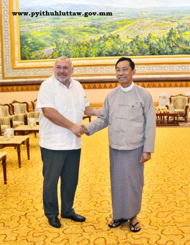 ပြည်သူ့လွှတ်တော် ဥက္ကဋ္ဌ သည် ကမ္ဘာ့ခေါင်းဆောင်များ မဟာမိတ်အဖွဲ့ မက်ဒရစ်၏ အဖွဲ့ဝင် များ ဖြစ်ကြသော သြစတြီးယား အဓိပတိဟောင်း မစ္စတာ အဲဖရက်ဂူဆန်ဘာ နှင့် ဘူတန် ဝန်ကြီးချုပ်ဟောင်း မစ္စတာ ဂျင်မီရိုဆာသင်လေး တို့ ဦးဆောင်သည့် အဖွဲ့အား ၂၀၁၅ ခုနှစ် စက်တင်ဘာလ ၁၀ ရက်နေ့ နံနက် (၁၁း၃၀) နာရီ အချိန်တွင် နေပြည်တော်ရှိ ဇမ္ဗူသီရိ ဧည့်ခန်းမဆောင်၌ လက်ခံတွေ့ဆုံသည်။