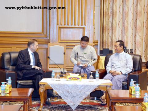 ပြည်သူ့လွှတ်တော်ဥက္ကဋ္ဌ သူရဦးရွှေမန်းသည် မြန်မာနိုင်ငံဆိုင်ရာ အမေရိကန်သံအမတ်ကြီး မစ္စတာ ဒဲရစ်မစ်ချဲယ် အား ၂၀၁၅ ခုနှစ် စက်တင်ဘာလ ၃ ရက်နေ့ နံနက် (၉း၀၀) နာရီတွင် နေပြည်တော်ရှိ လွှတ်တော် အဆောက်အအုံ ပြည်သူ့လွှတ်တော် ဧည့်ခန်းမ၌ လက်ခံတွေ့ဆုံသည်။