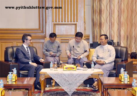 ပြည်သူ့လွှတ်တော် ဥက္ကဋ္ဌ သူရဦးရွှေမန်း သည် မြန်မာနိုင်ငံဆိုင်ရာ အီတလီနိုင်ငံ သံအမတ်ကြီး H.E.Mr. Pier Giorgio ALIBERTI အား ၂၀၁၅ ခုနှစ် စက်တင်ဘာလ ၁၈ ရက်နေ့ နံနက် (၉း၀၀) နာရီတွင် နေပြည်တော်ရှိ လွှတ်တော်အဆောက်အအုံ ပြည်သူ့လွှတ်တော်ဧည့်ခန်းမ၌ လက်ခံတွေ့ ဆုံသည်။